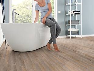 WATERCORK PLUS est un sol design imperméable en pose flottante sans colle. Grâce au système de verrouillage récemment développé « PressFit », WATERCORK PLUS peut être installé rapidement et facilement dans toutes les pièces, même dans des espaces humides tels que les salles de bains et les cuisines. Avec une épaisseur de seulement 6 mm, WATERCORK PLUS peut aussi être posé sur des sols durs déjà en place. L'élément novateur réside dans la couche intermédiaire en liège imperméable composée d'un mélange de granulés, qui est extrêmement solide et offre tous les avantages d'un revêtement de sol en liège. Les propriétés de résilience du liège sont conservées et grâce à son confort, c'est un sol au design unique doté d'extraordinaires caractéristiques.